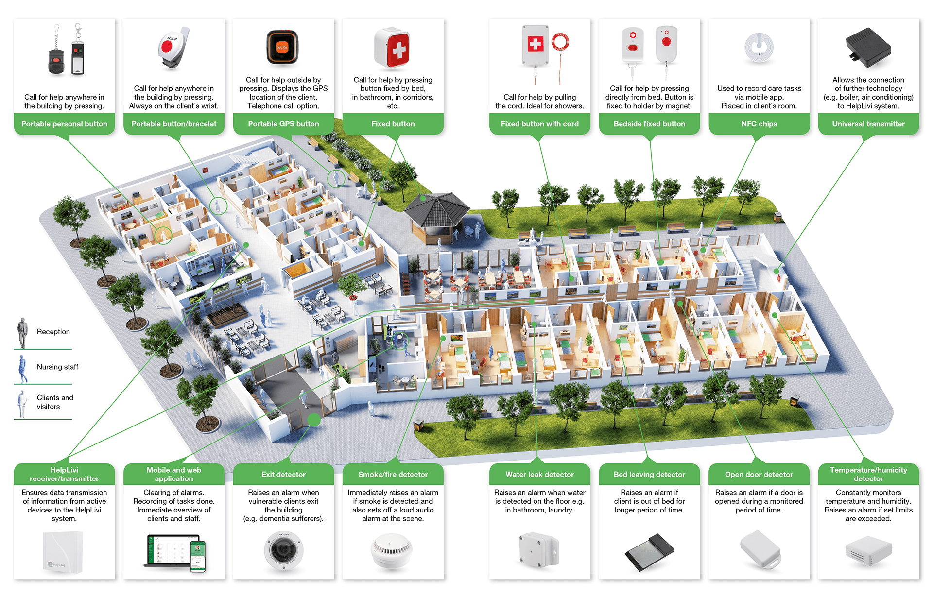 System bezpieczeństwa i komunikacji HelpLivi został zaprojektowany tak, aby ułatwiać komunikację między opiekunem a klientem lub pielęgniarką a pacjentem.